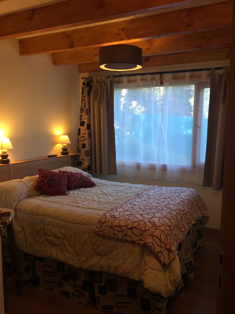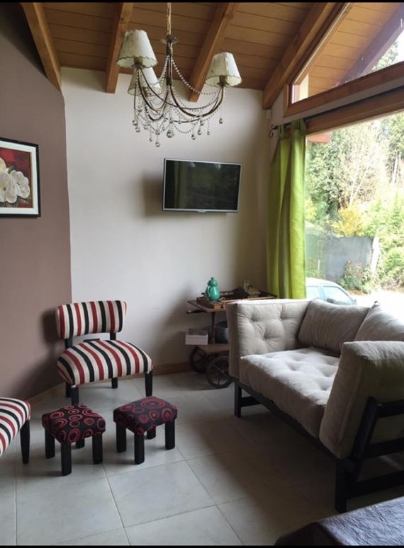 Luminosa cabaña con espacio para 5 huéspedes. Dos dormitorios, uno con cama matrimonial y el otro con camas individuales. Baño completo más toilette. Asador y entrada para vehículo. Ubicada dentro de bosque con vegetación autóctona e imponente vista a los cerros.